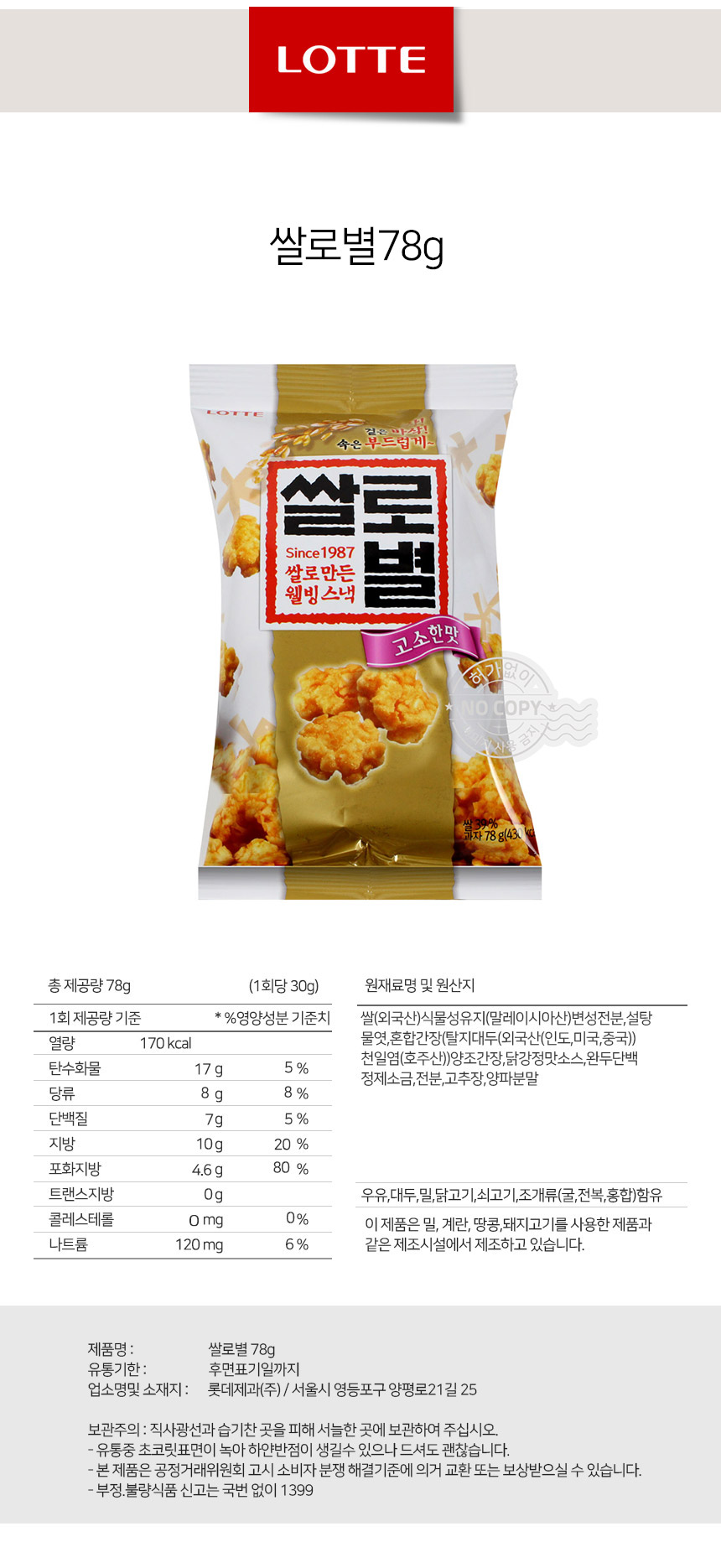 바삭과자 간식타임 롯데 쌀로별 78g상품상세_동원몰