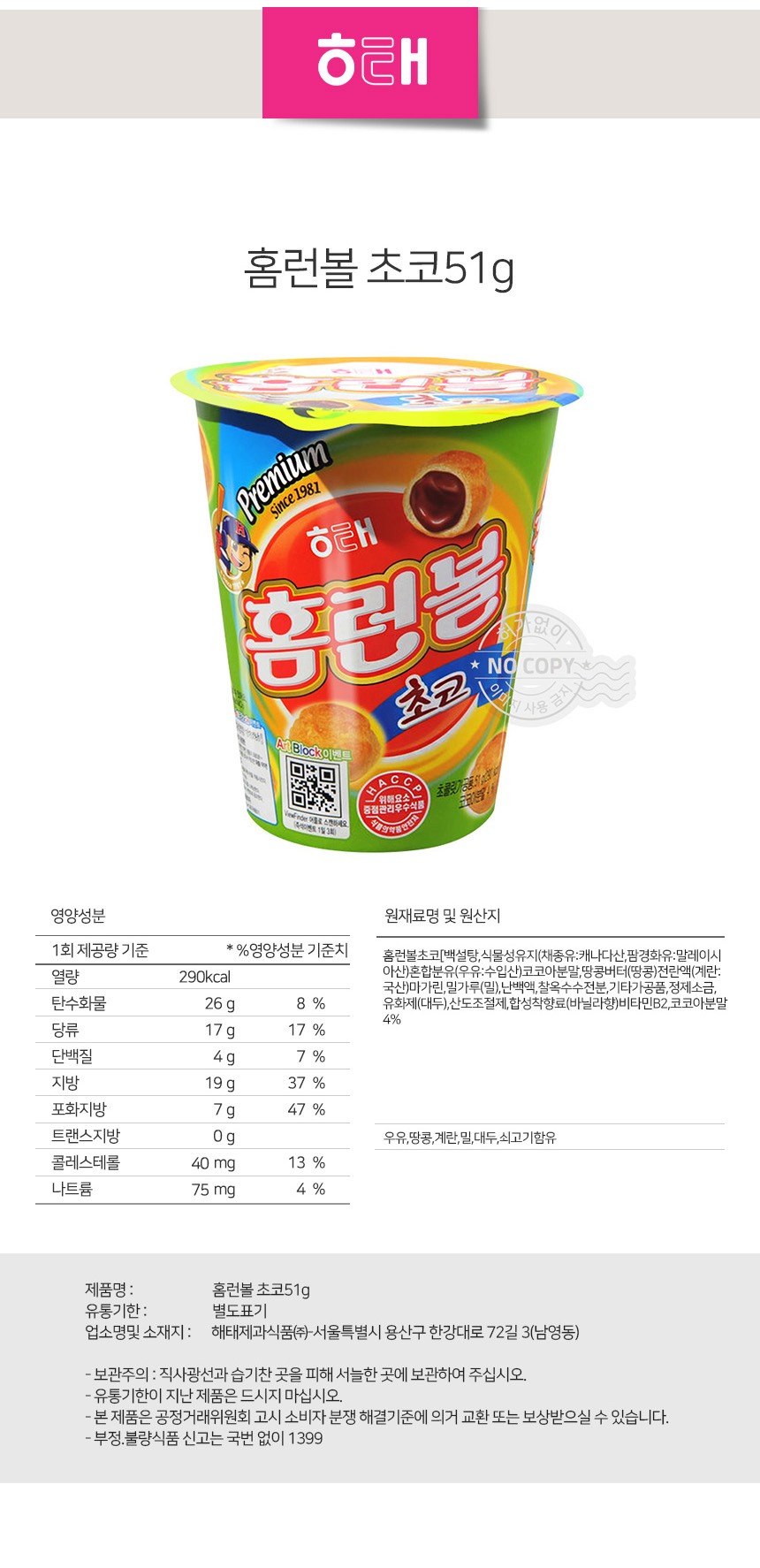 바삭과자 간식타임 해태 홈런볼초코컵 51g상품상세_동원몰