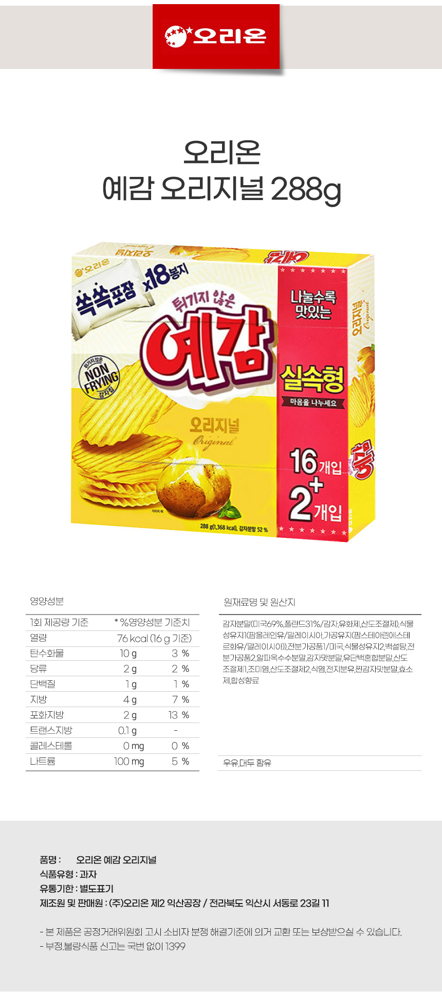| 원재료 및 함량 | 상세설명참조 |