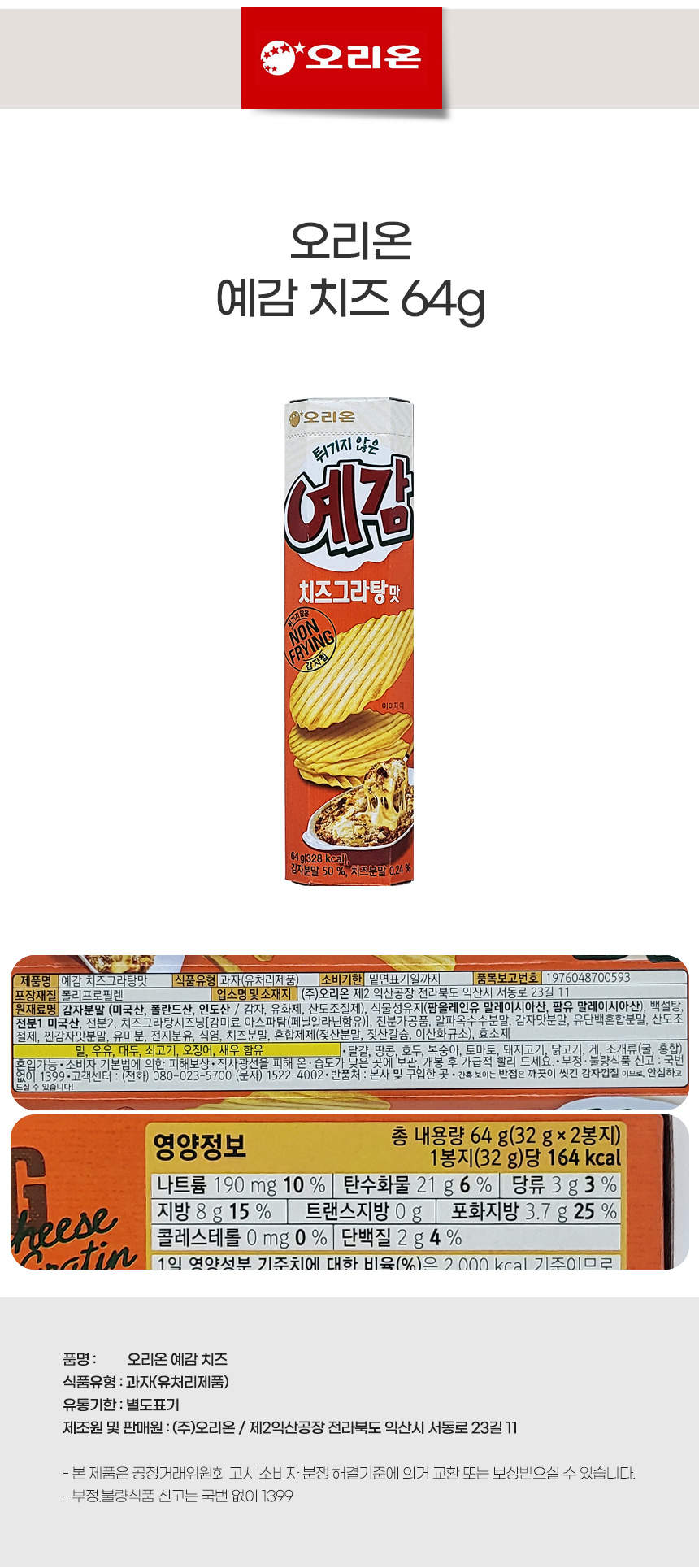 바삭과자 간식타임 오리온 예감 치즈 64g상품상세_동원몰