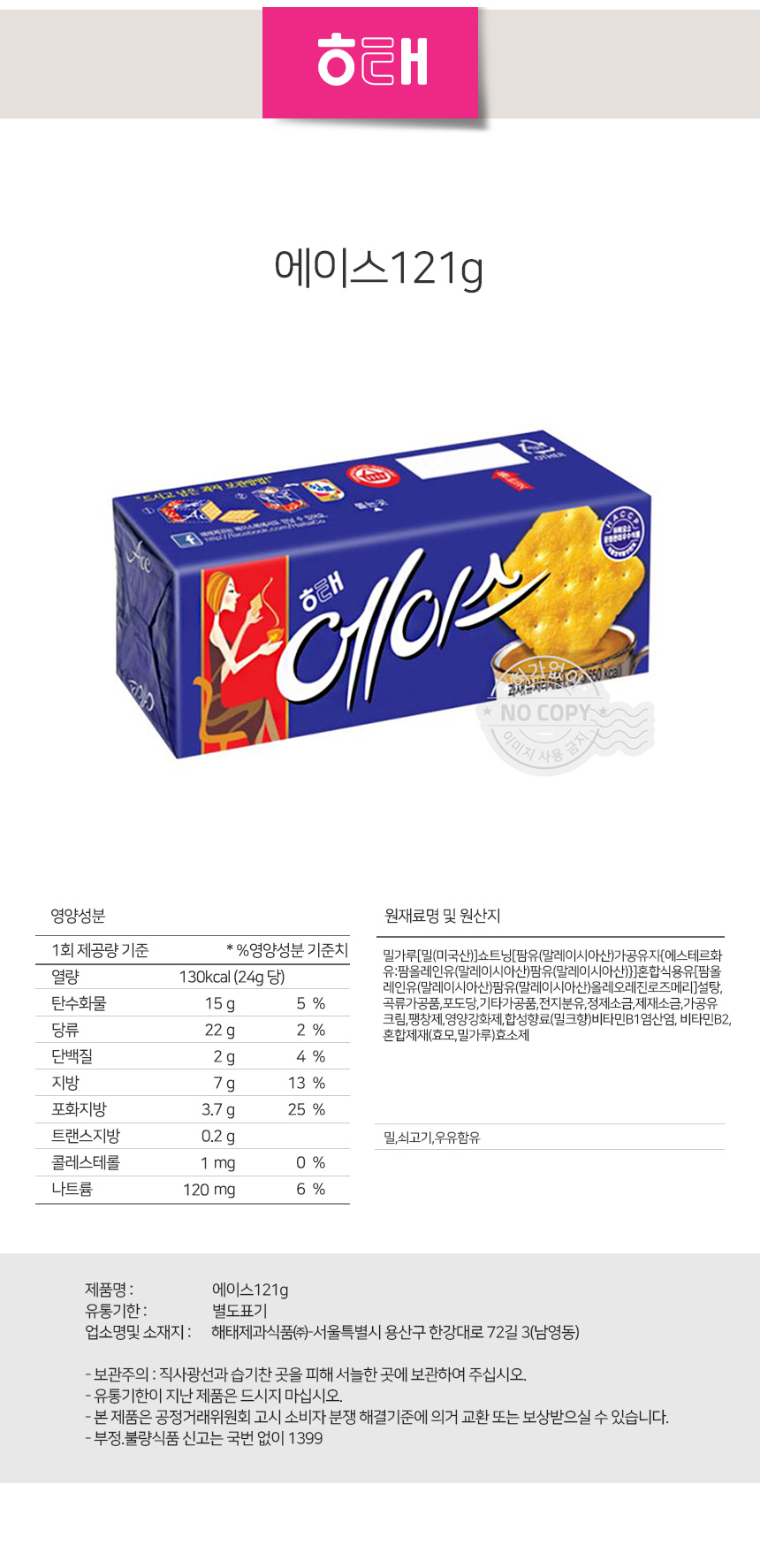 바삭과자 간식타임 해태 에이스 121g상품상세_동원몰