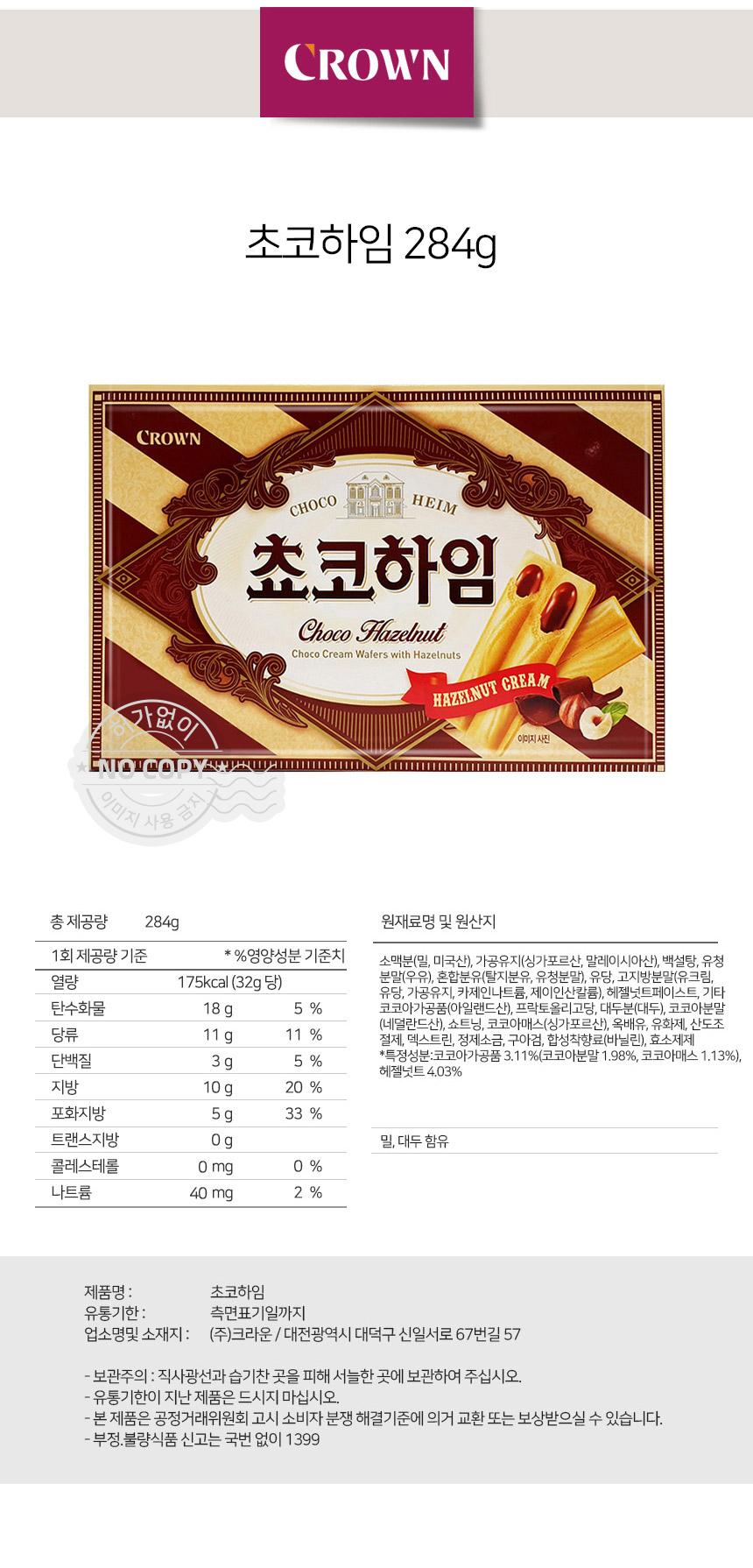바삭과자 간식타임 크라운 쵸코하임 284g상품상세_동원몰