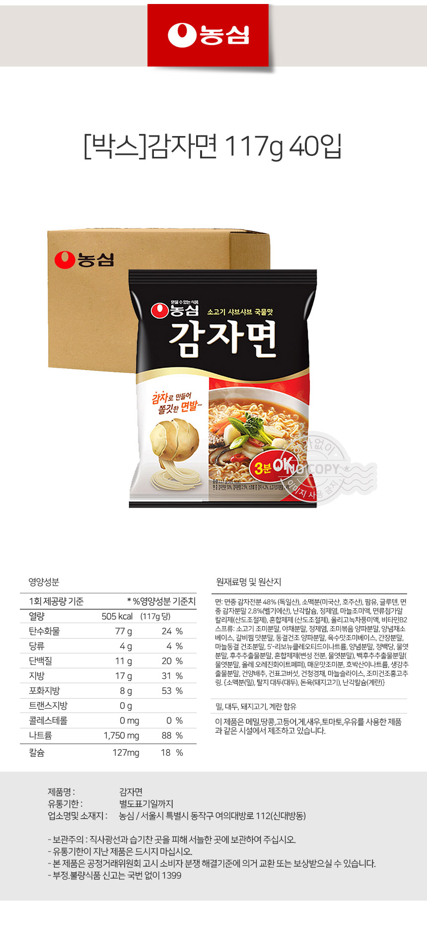 | 원재료 및 함량 | 상세설명참조 |