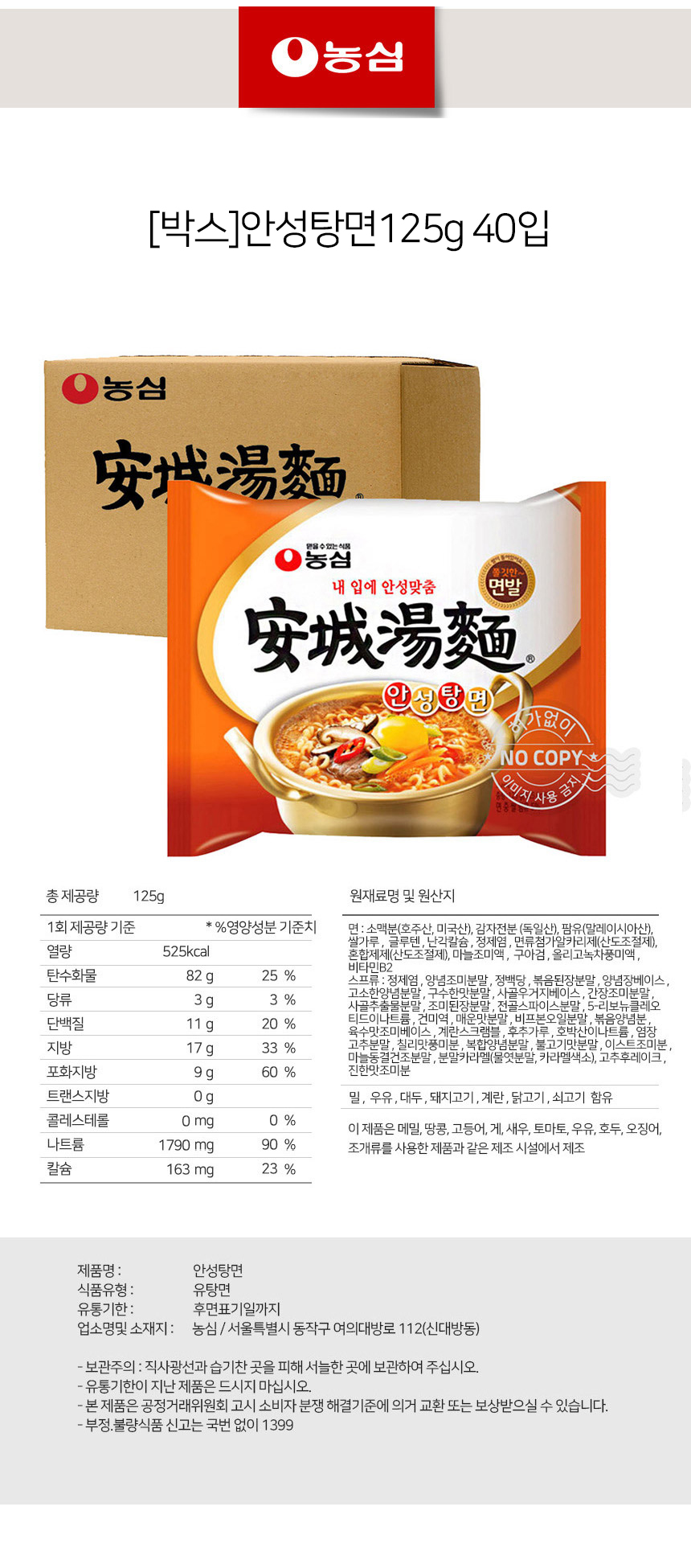 한끼라면 얼큰면 농심 안성탕면 125g 40입상품상세_동원몰
