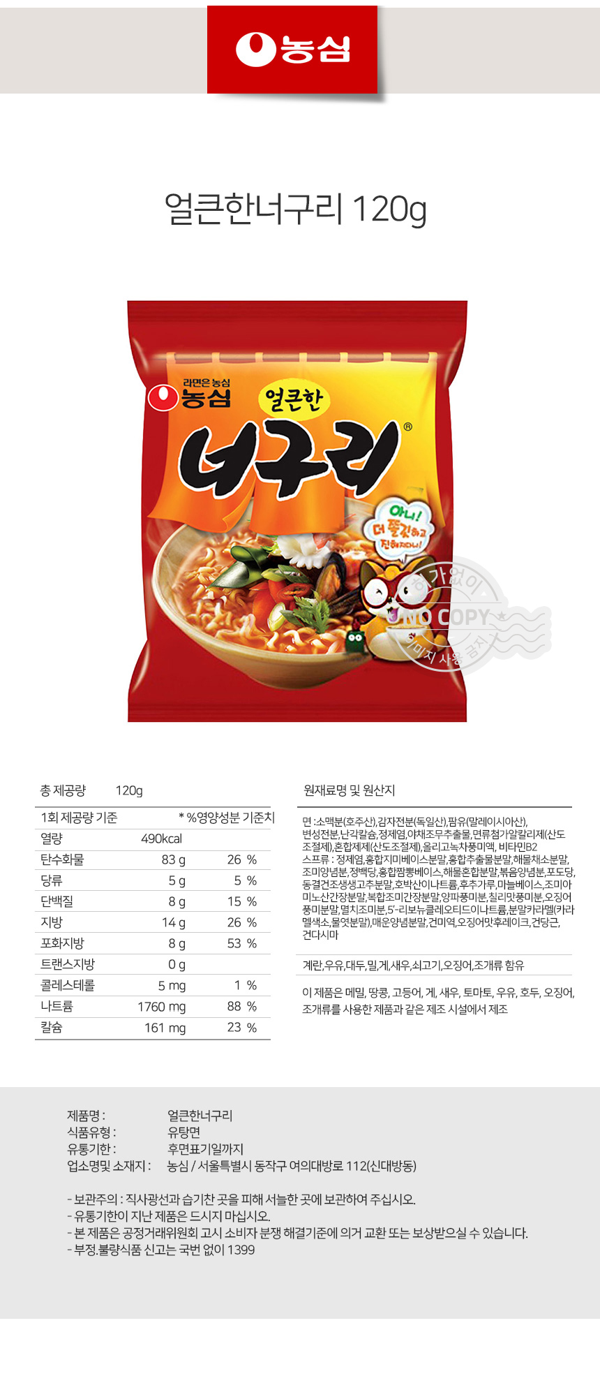 한끼라면 얼큰면 농심 얼큰한너구리 120g상품상세_동원몰