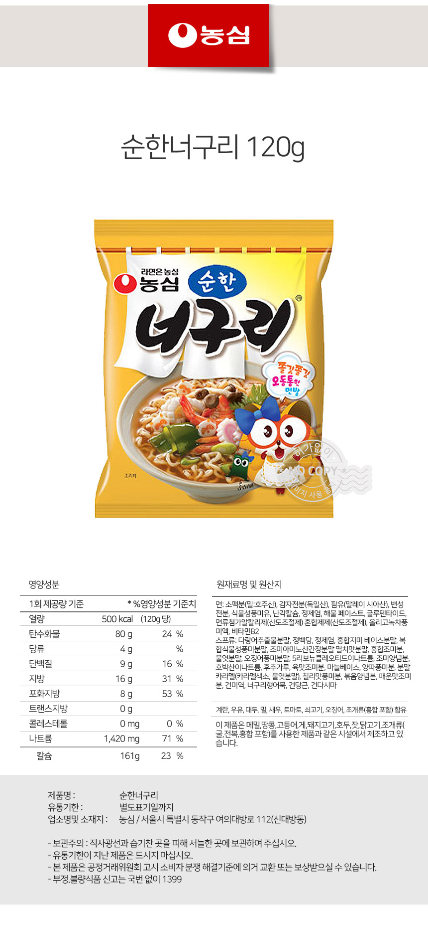한끼라면 얼큰면 농심 순한너구리 120g상품상세_동원몰