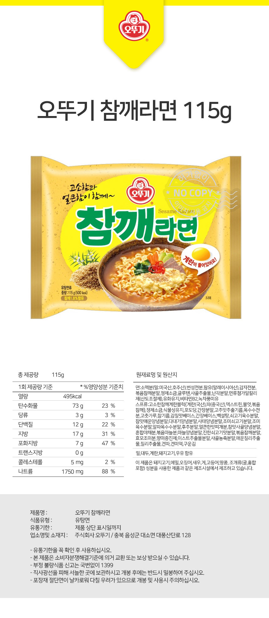 | 원재료 및 함량 | 상세설명참조 |