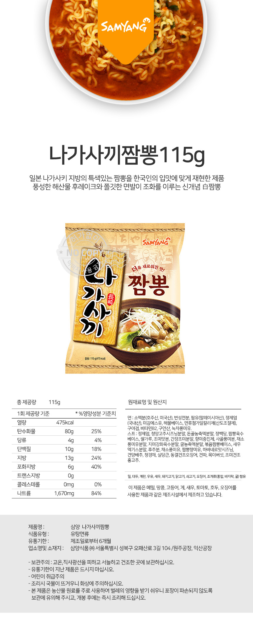| 원재료 및 함량 | 상세설명참조 |