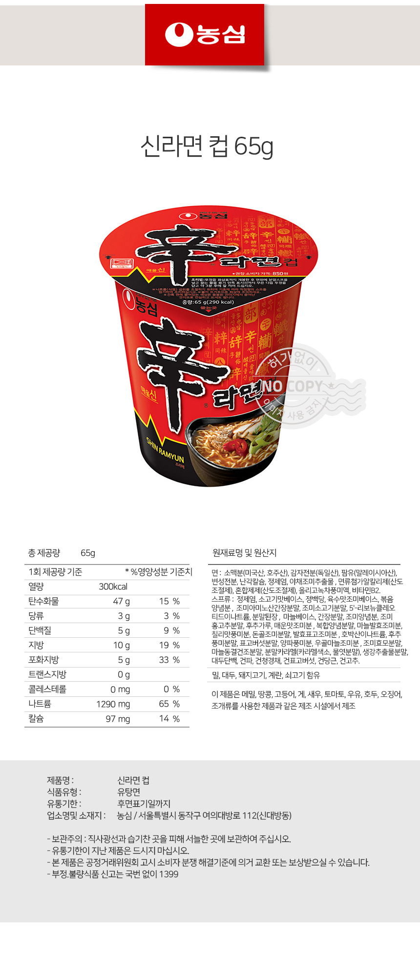 한끼라면 얼큰면 농심 신라면 컵 65g상품상세_동원몰