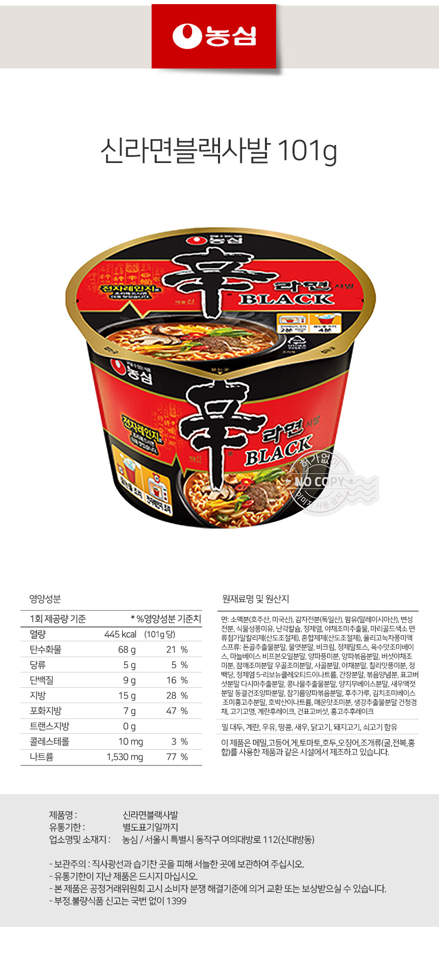 한끼라면 얼큰면 농심 신라면블랙사발 101g상품상세_동원몰