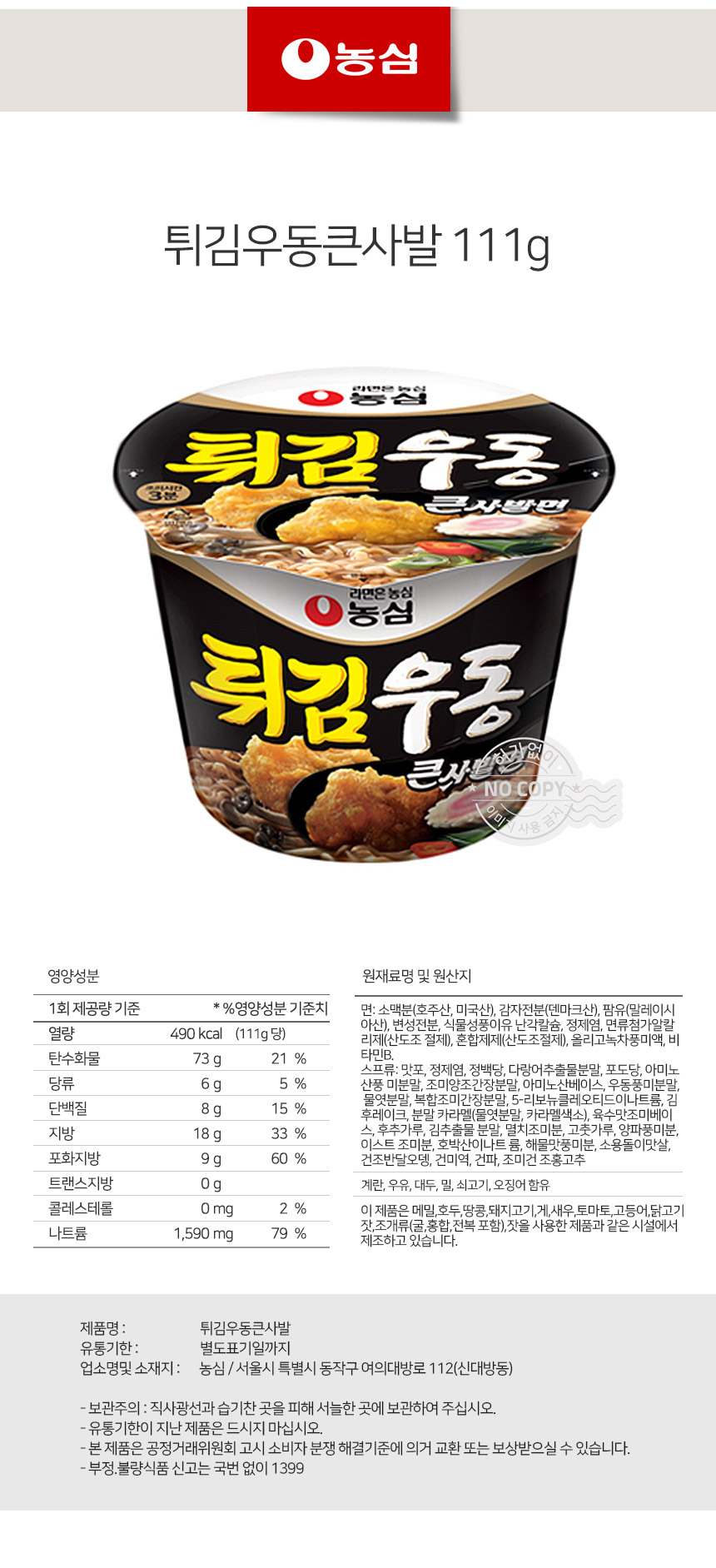 한끼라면 얼큰면 농심 튀김우동큰사발 111g상품상세_동원몰
