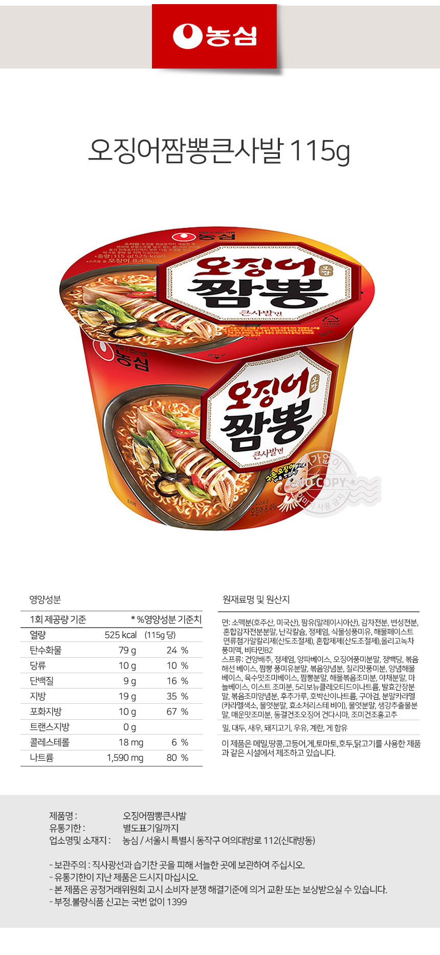 | 원재료 및 함량 | 상세설명참조 |
