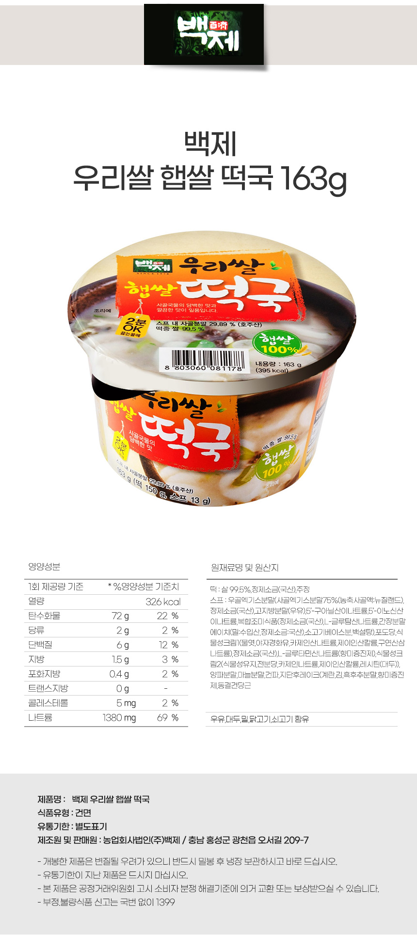 | 원재료 및 함량 | 상세설명참조 |