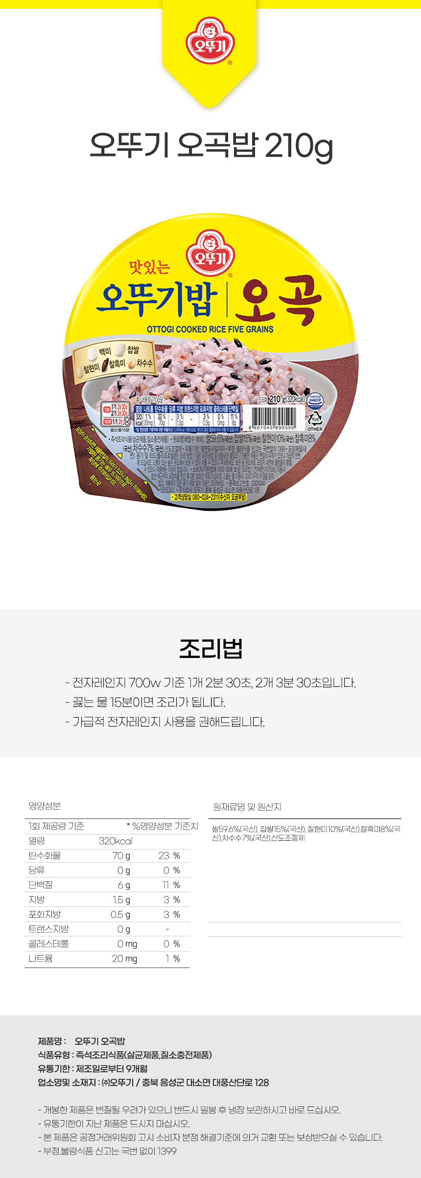 오늘저녁뭐먹지 오뚜기 오곡밥 210g상품상세_동원몰