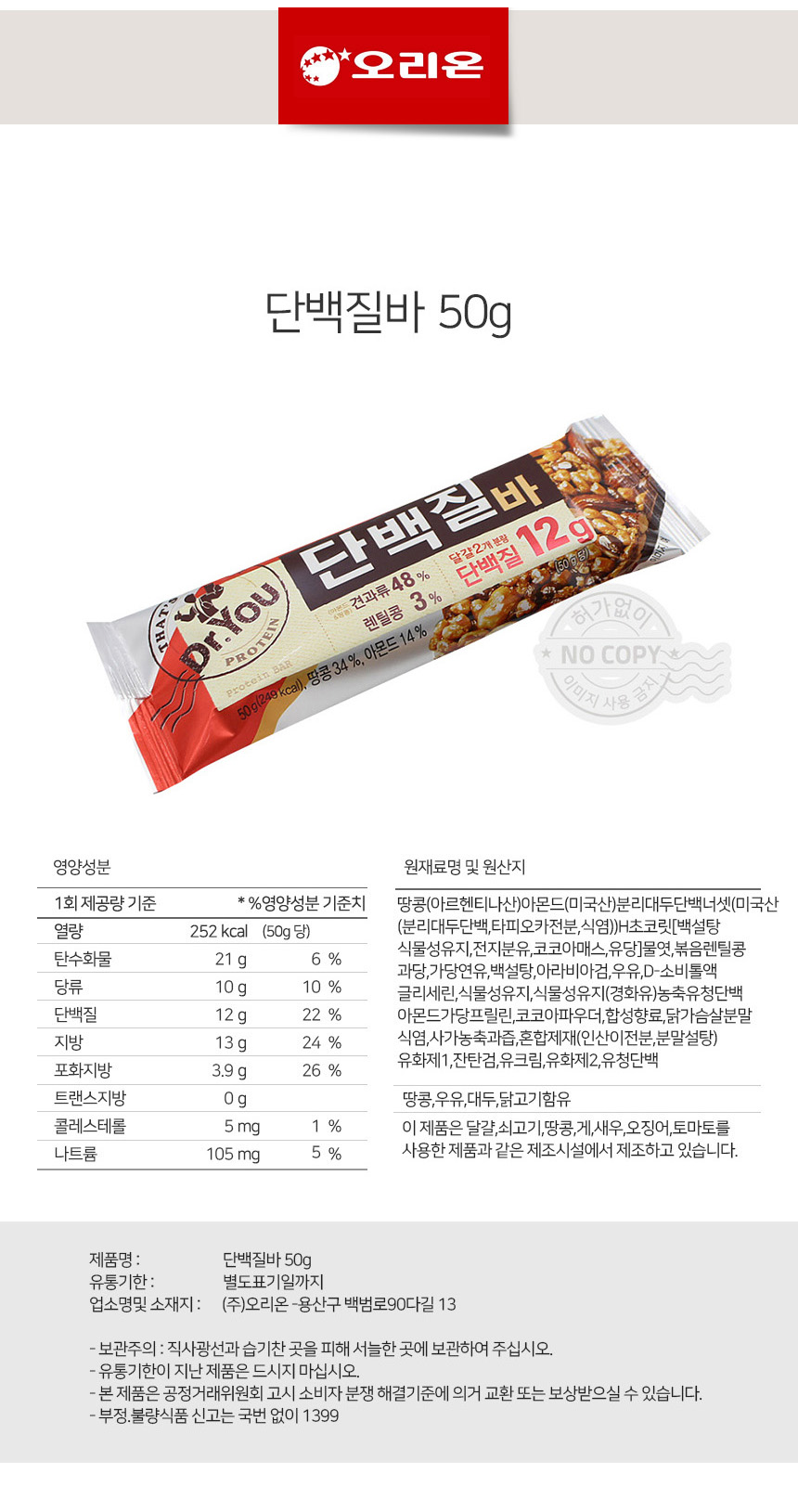 당충전 달달간식 오리온 닥터유단백질바 50g상품상세_동원몰
