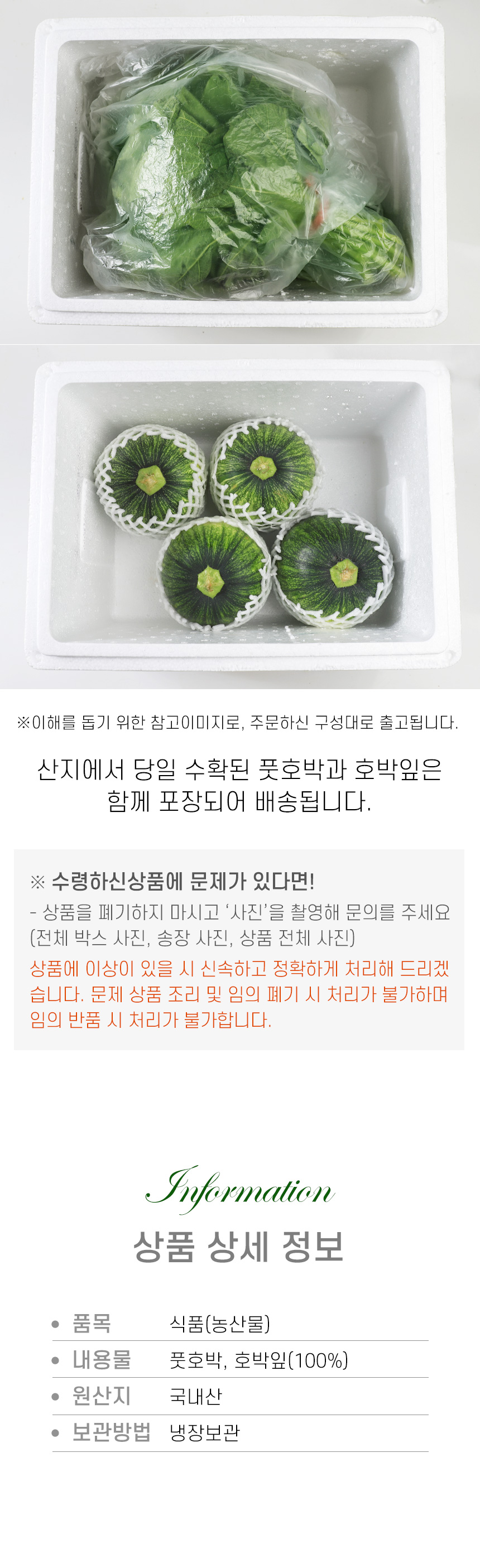 | 상품구성 | 풋호박 (중) 1.5kg(2개입) + 호박잎 1단(300g) |