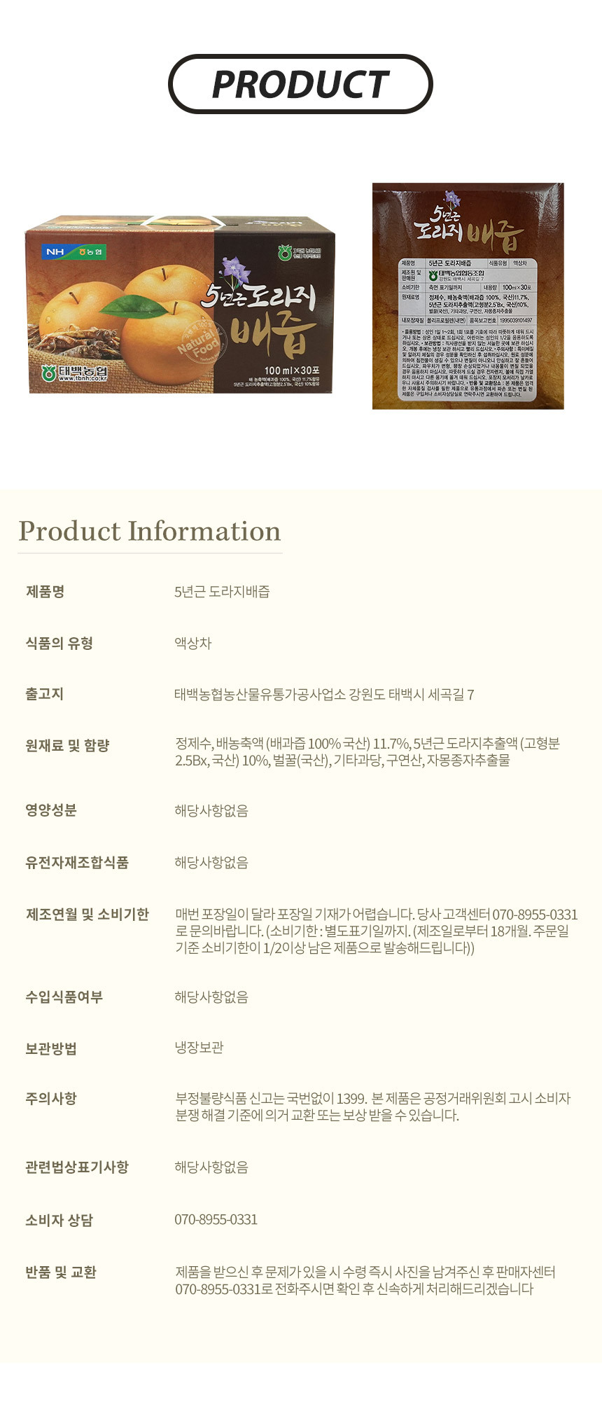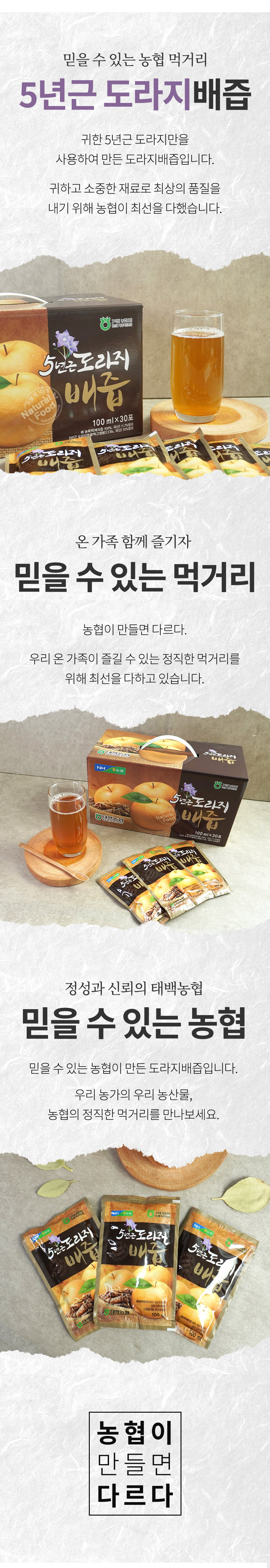 | 품명 | [태백농협] 농협이 만든 5년근 도라지배즙 100ml x 60포 |