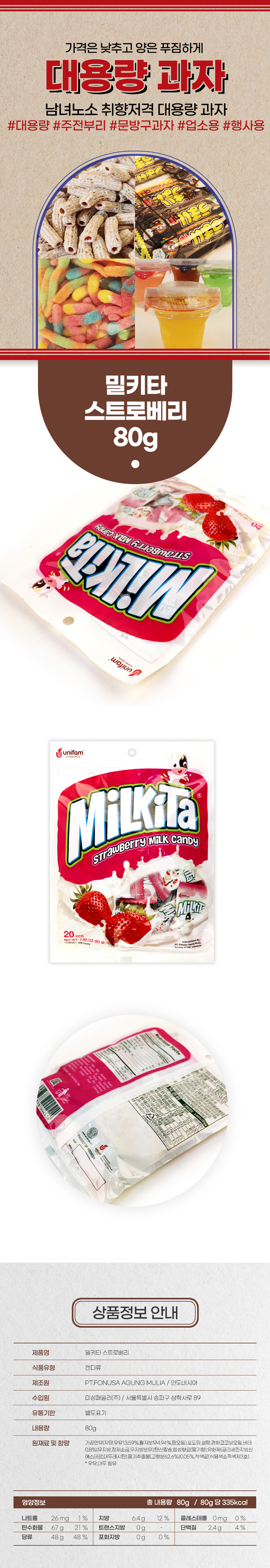 먹거리 맛있는거 유니캔 밀키타 스트로베리 80g상품상세_동원몰