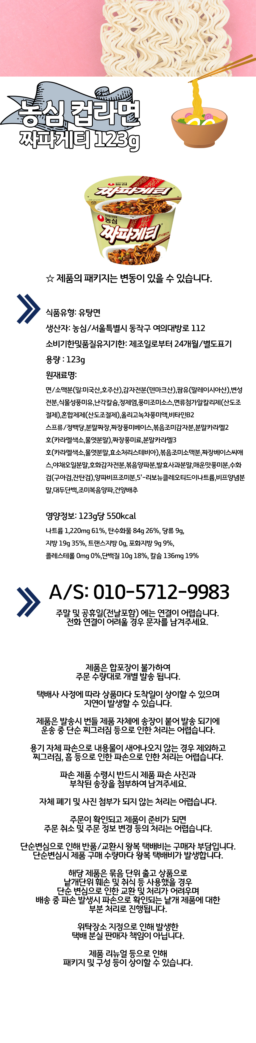 | 포장단위별 내용물의 용량(중량),수량 | 짜파게티 큰사발면 123g |