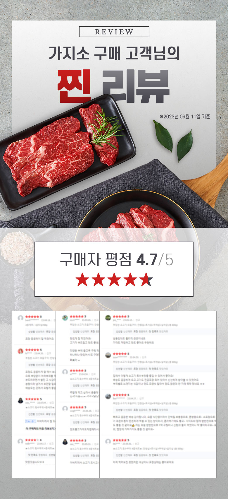 | 상품구성 | 안창살200g+부채살200g+토시살200g+우삼겹200g (총 800g) |