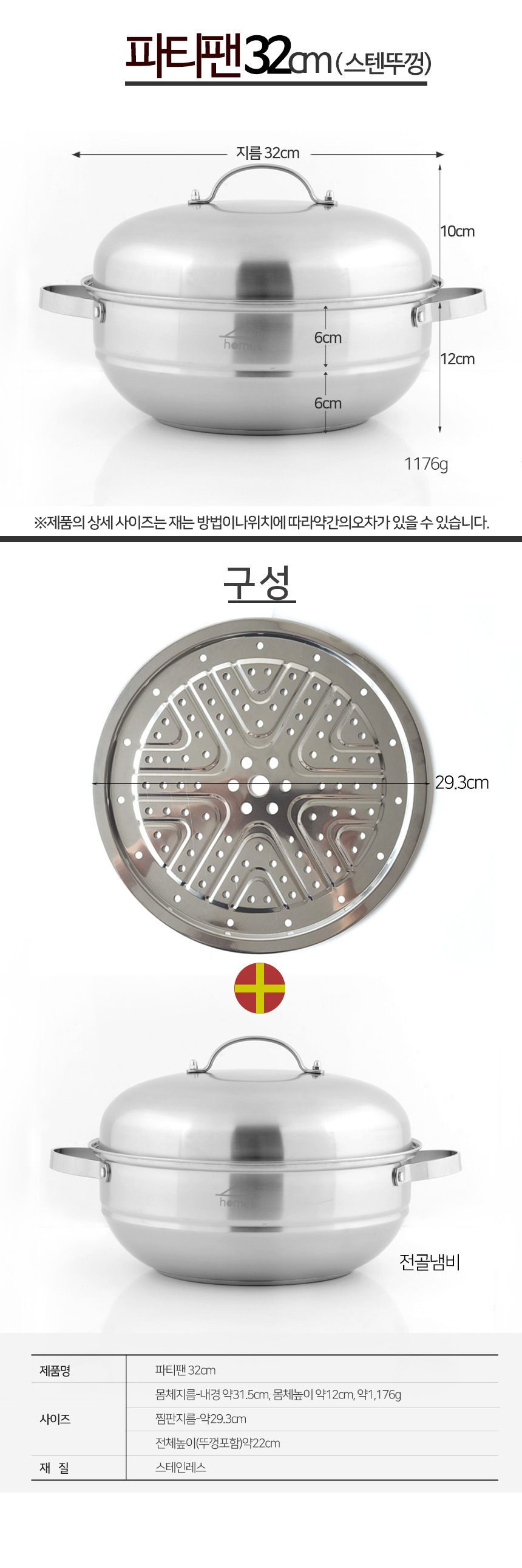 | 구성품 | 본체,뚜껑,찜판 |