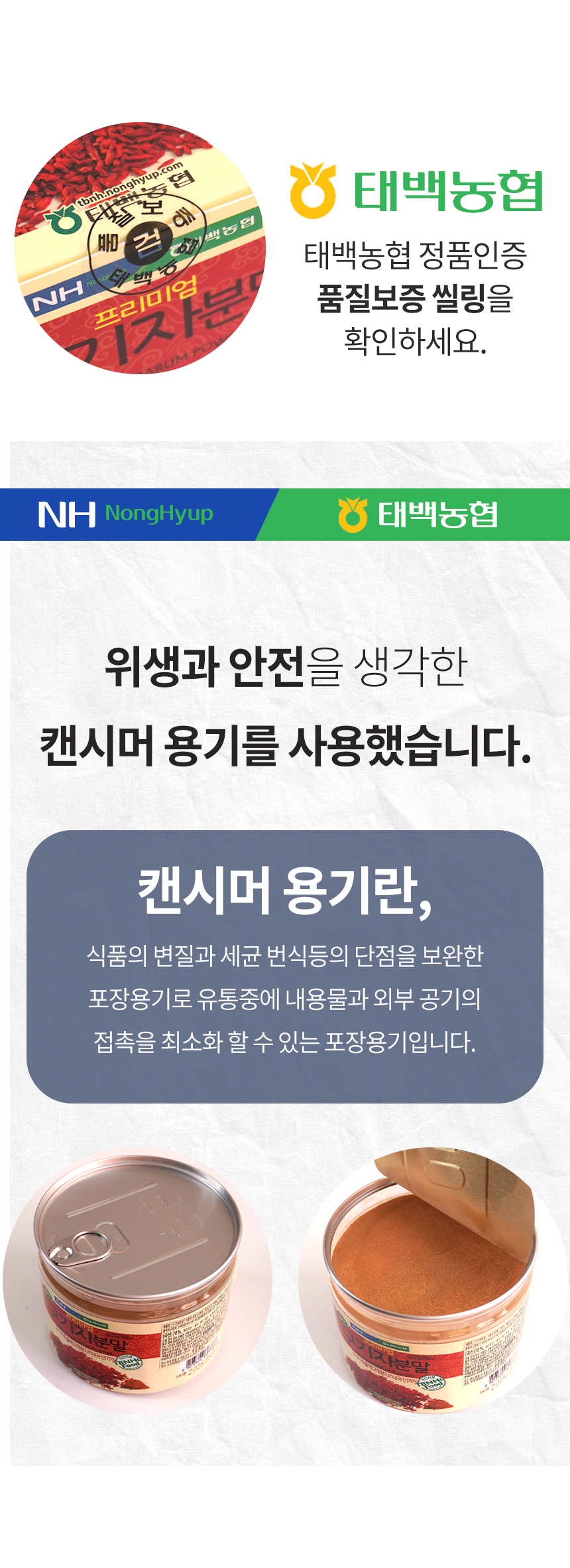 | 생산자 및 소재지/수입자 | 태백농협농산물유통가공사업소 강원도 태백시 새곡길 7 |