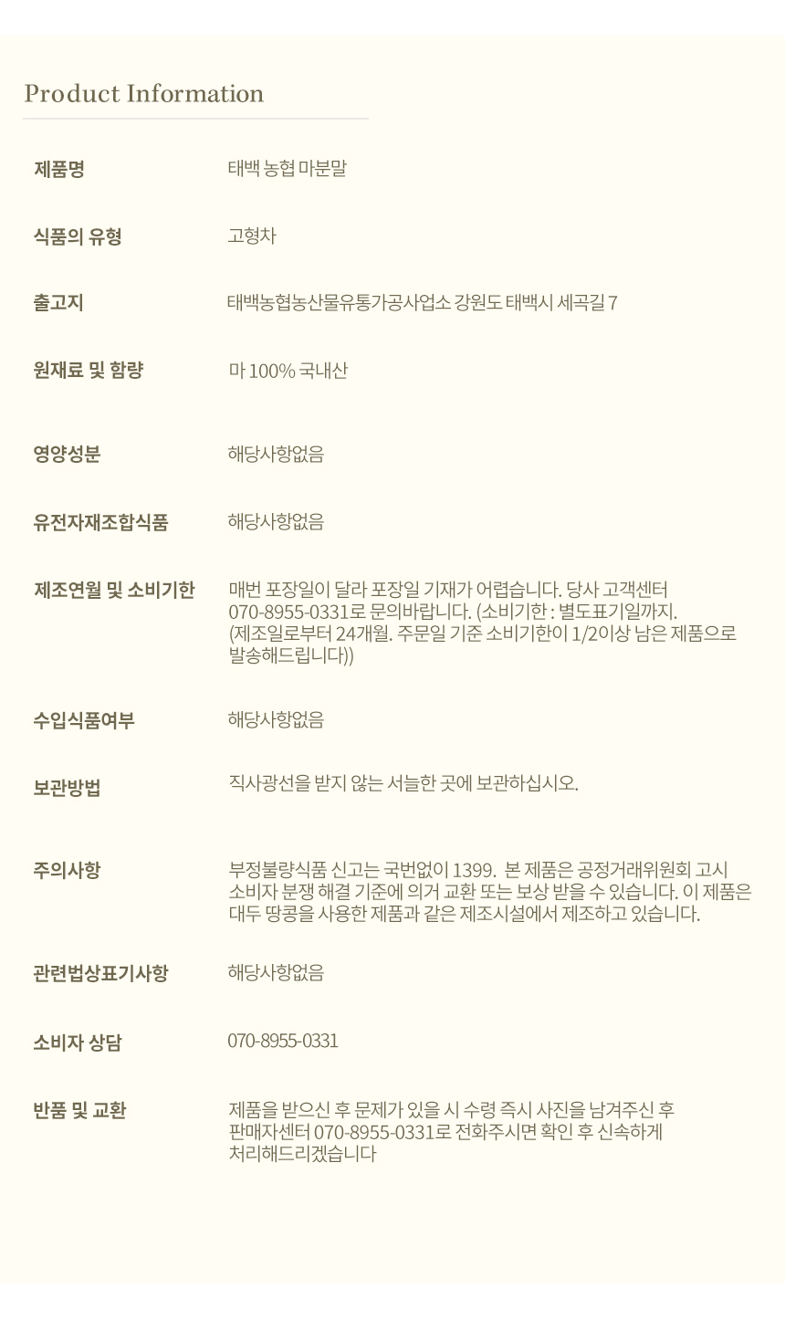 | 품명 | [태백농협] 농협이 만든 마분말 300g |