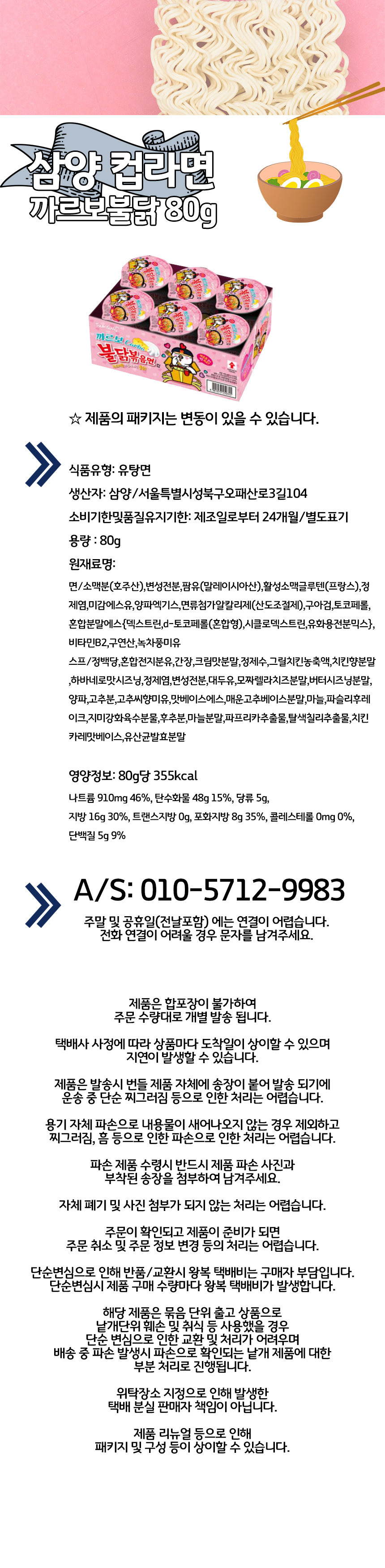 | 포장단위별 내용물의 용량(중량),수량 | 삼양라면 까르보 불닭볶음면 80g |
