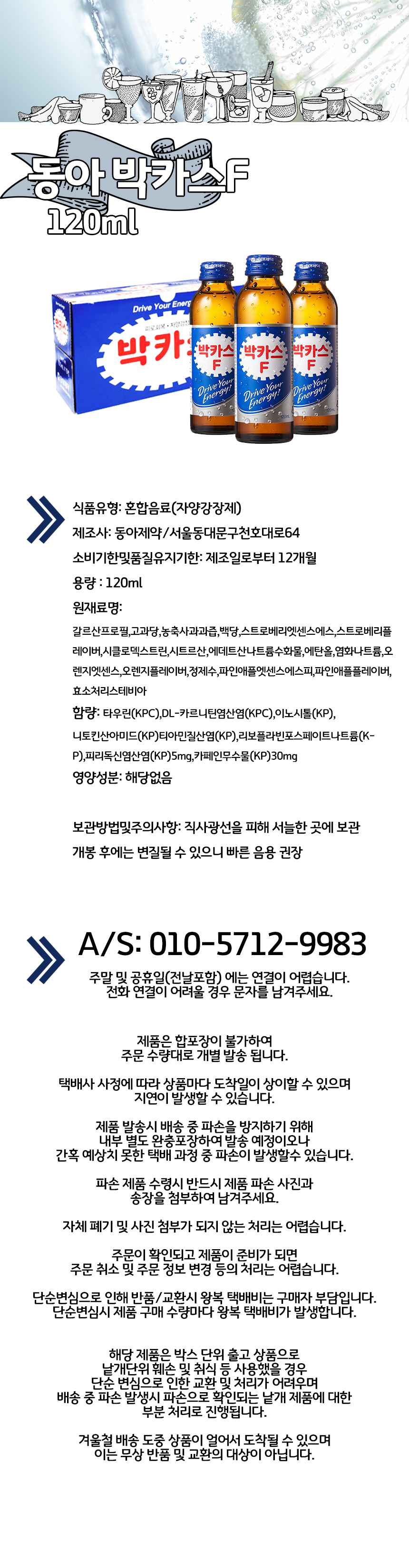 | 포장단위별 내용물의 용량(중량),수량 | 동아 박카스F 120mlx20개입 |