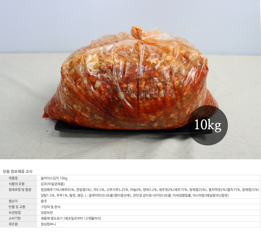 | 포장단위별 내용물의 용량(중량),수량 | 10kg, 1 |