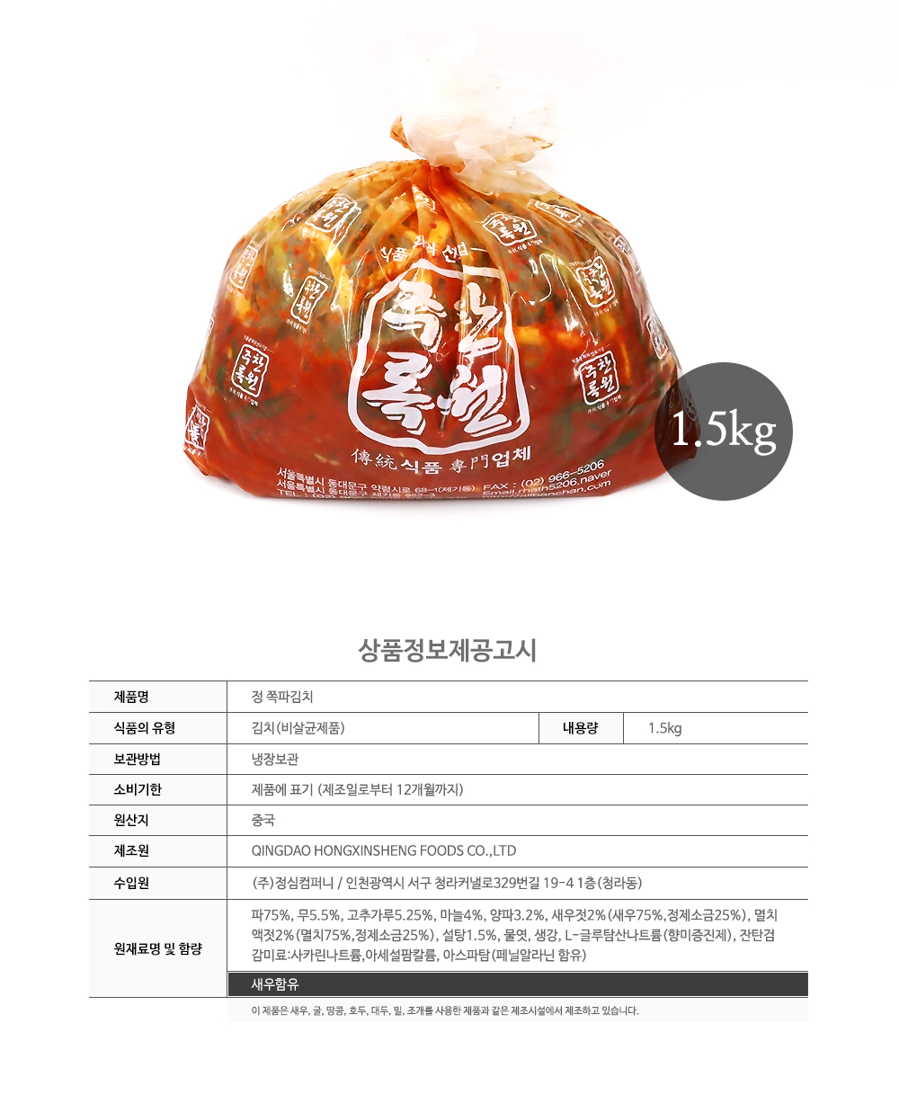 | 포장단위별 내용물의 용량(중량),수량 | 1.5kg, 1 |