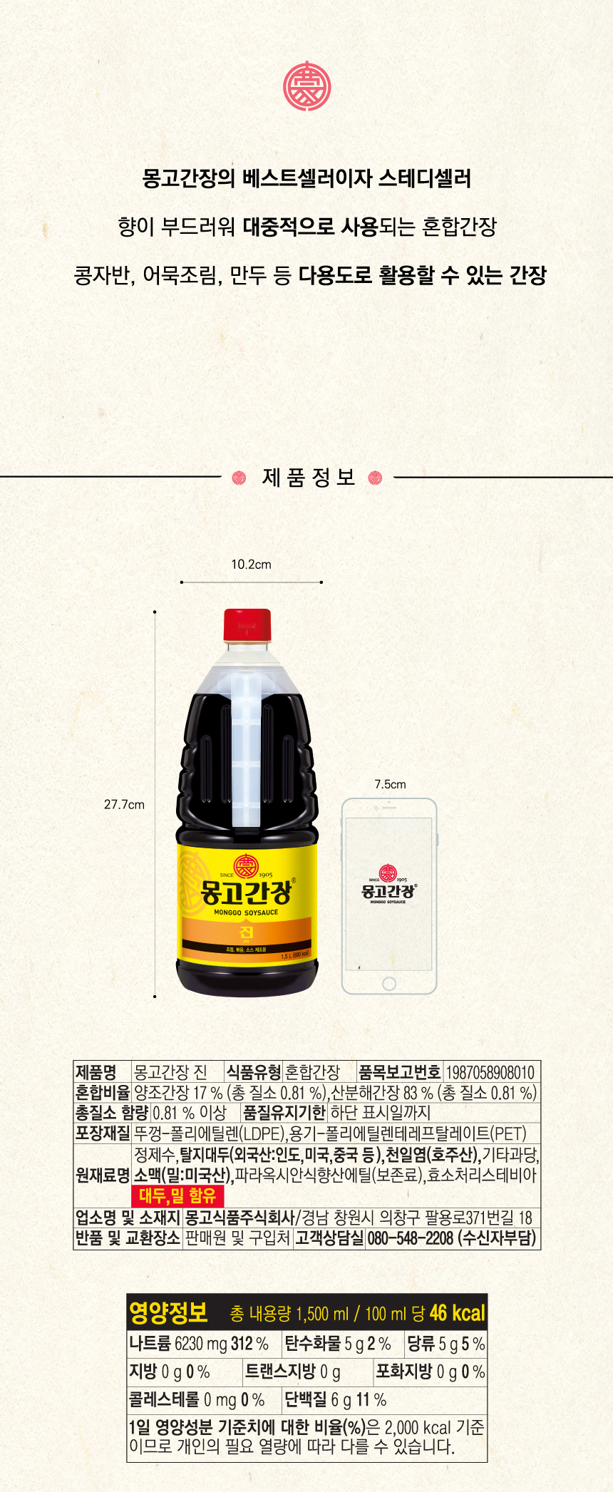 | 생산자 및 소재지/수입자 | 몽고식품 / 경남 창원시 의창구 팔용로371번길 18 |