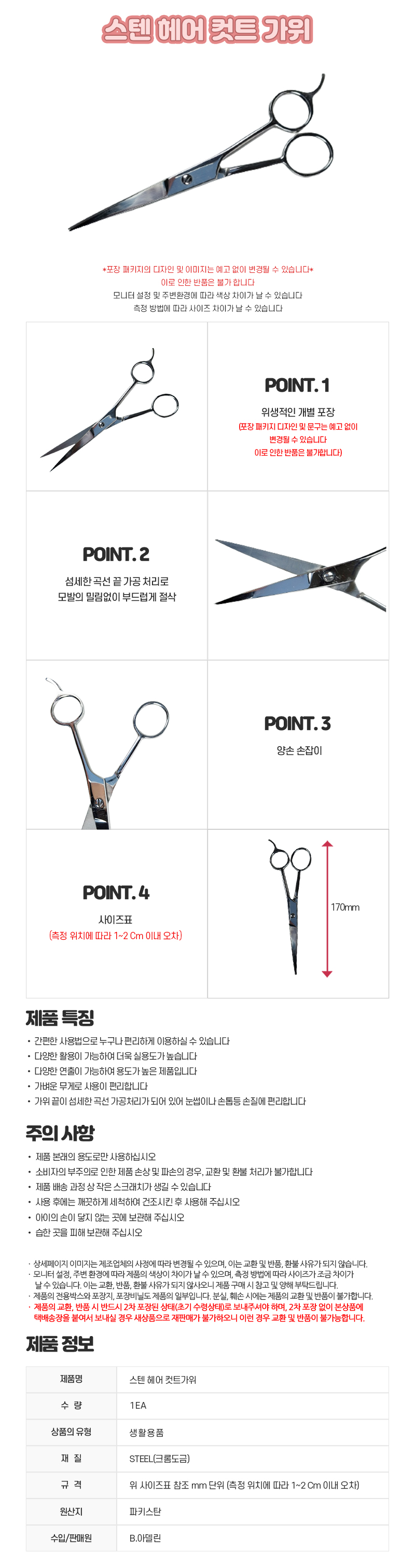 자연앤톡 가위 머리 미용 헤어 B아델린 컷트상품상세_동원몰
