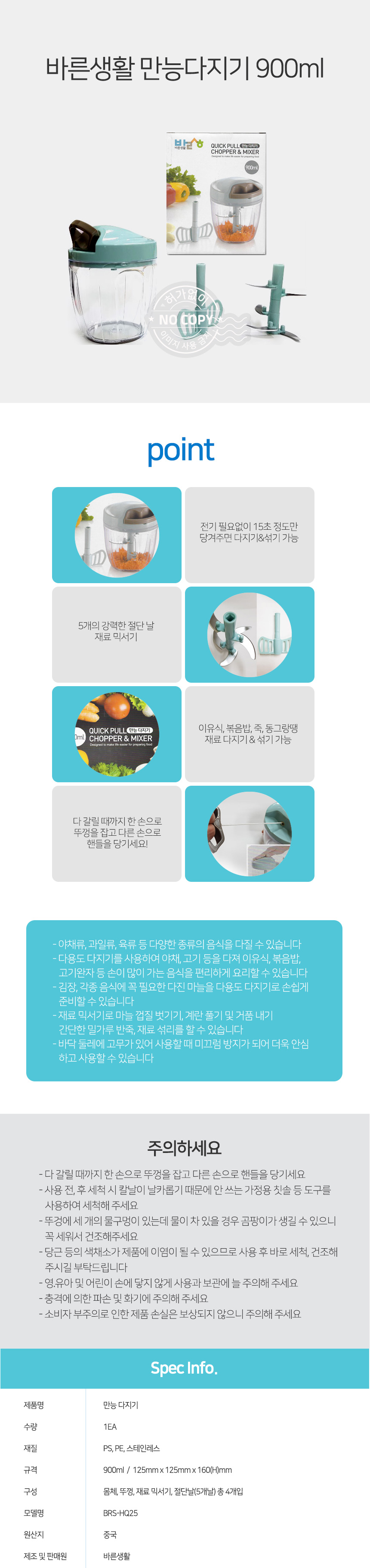 자연앤톡 900ml 만능다지기 생강 바른생활 마늘 믹서기 멀티상품상세_동원몰