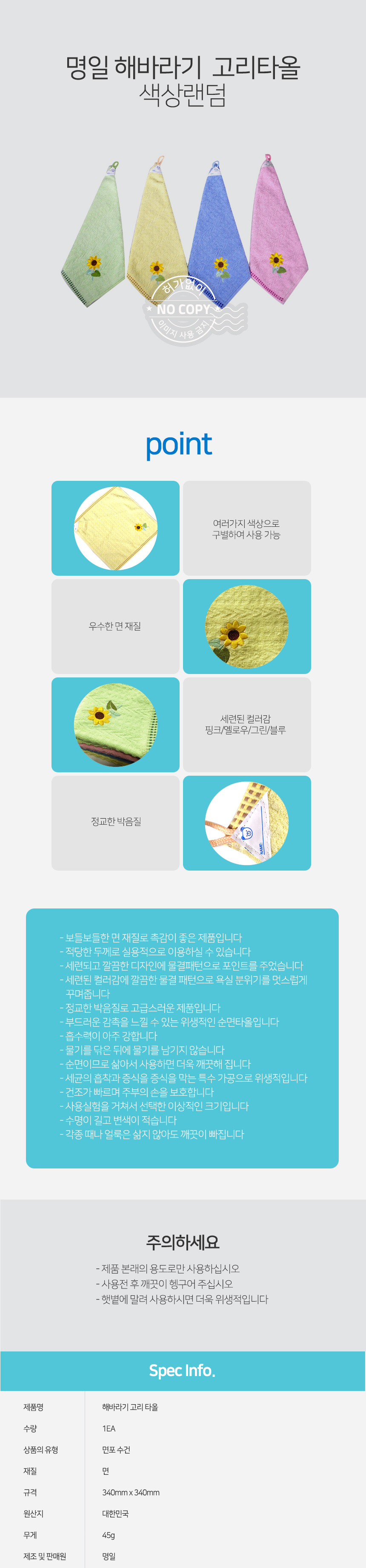 자연앤톡 고리 해바라기 색상랜덤 업소 걸레 설거지 타올상품상세_동원몰