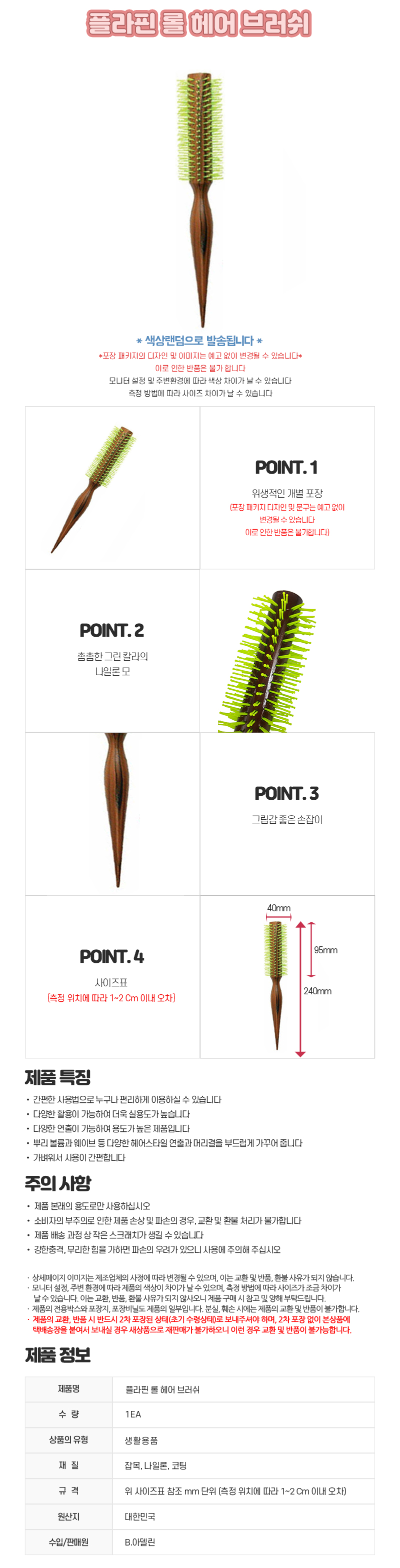 자연앤톡 B아델린 플라핀 롤헤어브러쉬상품상세_동원몰