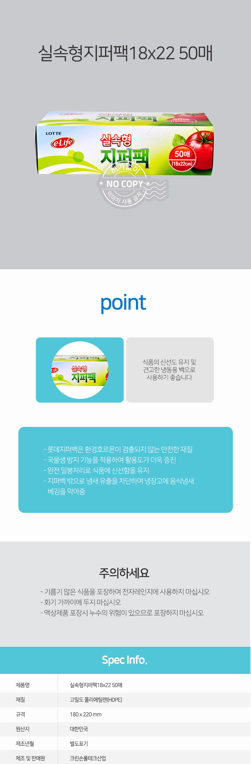 자연앤톡 18x22 지퍼백 위생백 실속형 지퍼팩 롯데 포장 50매상품상세_동원몰