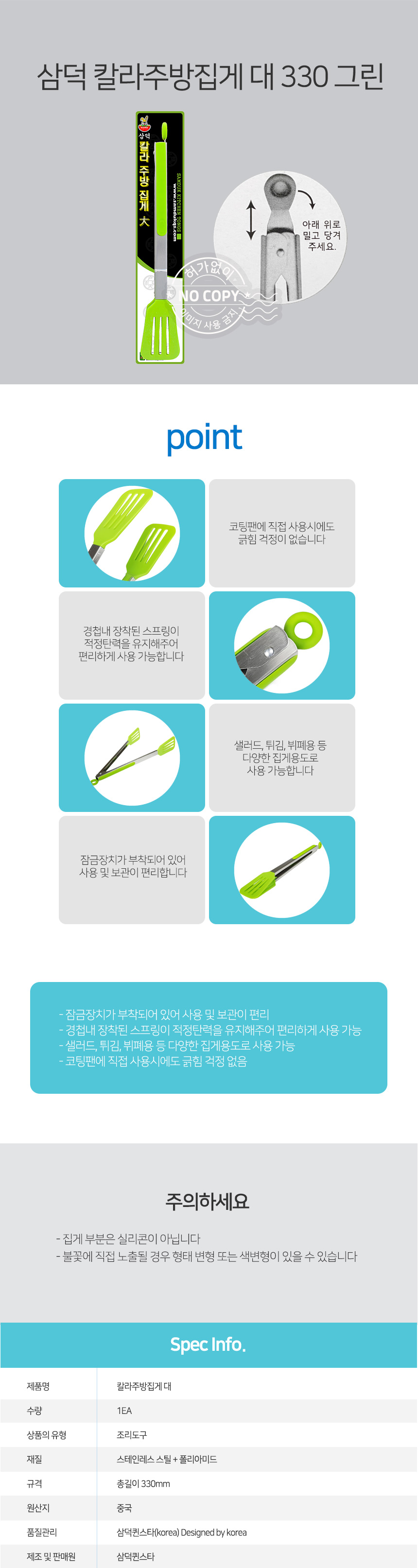 자연앤톡 330mm 그린 대 뒤지개 칼라주방집게형상품상세_동원몰