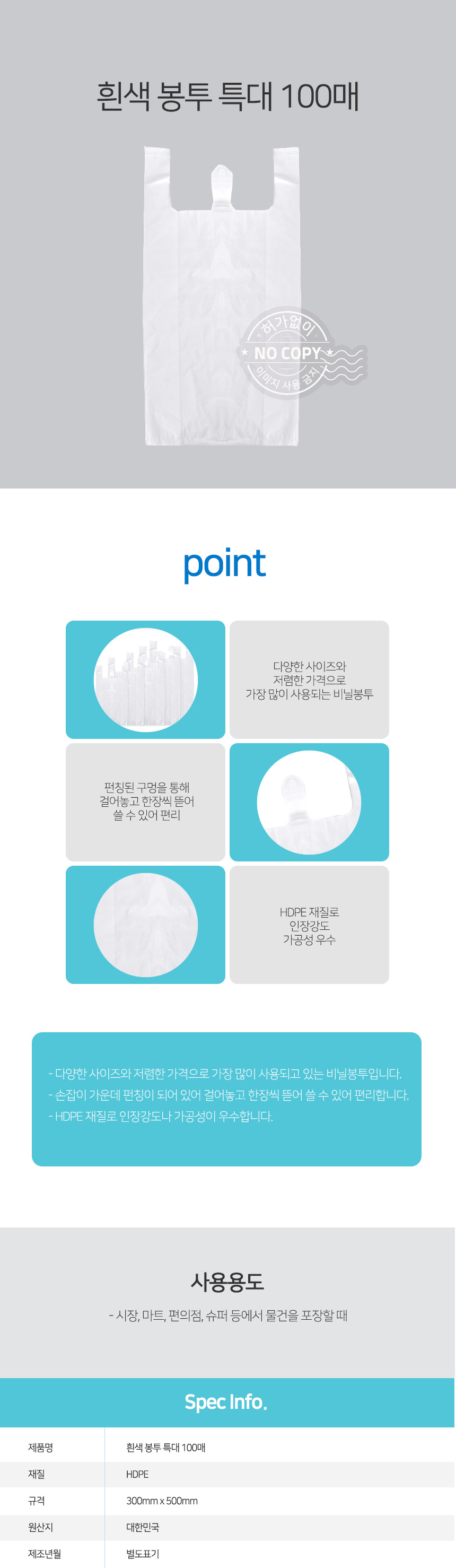 자연앤톡 플라스틱 100매 쇼핑봉투 특대 쓰레기 흰색 비닐상품상세_동원몰