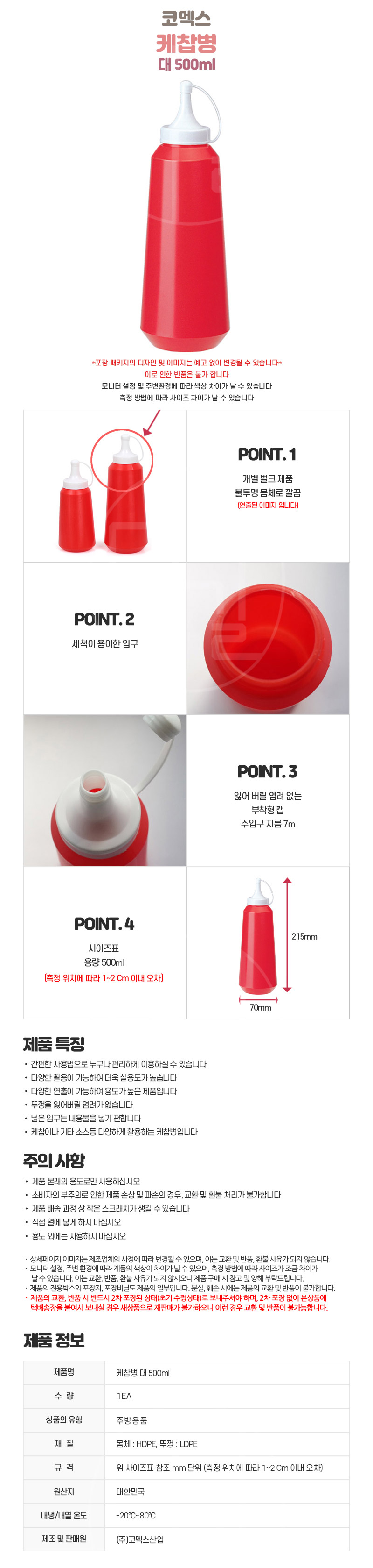 자연앤톡 케찹병 고추장 500ml 대 업소용 초장 소스병상품상세_동원몰