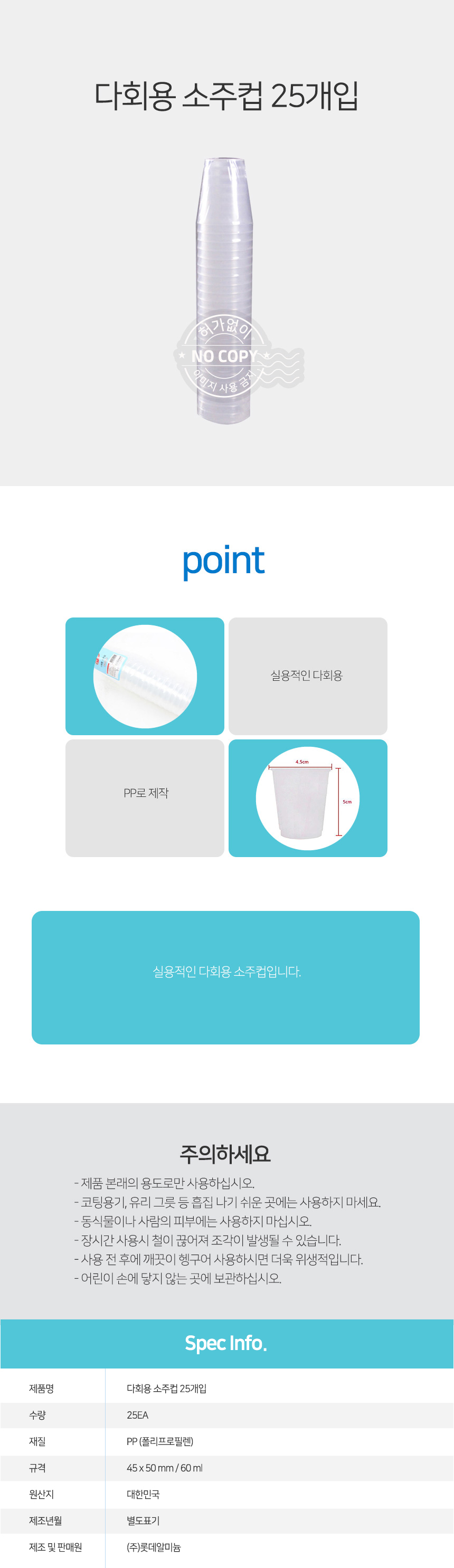 자연앤톡 25개입 소주컵 시음 일회용 다회용 롯데 반투명 성묘상품상세_동원몰