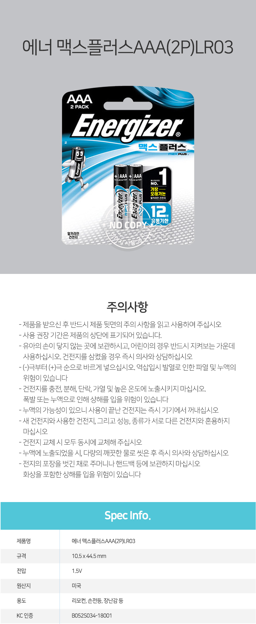 자연앤톡 알카라인건전지 2P 에너자이저 LR03 맥스플러스 AAA상품상세_동원몰