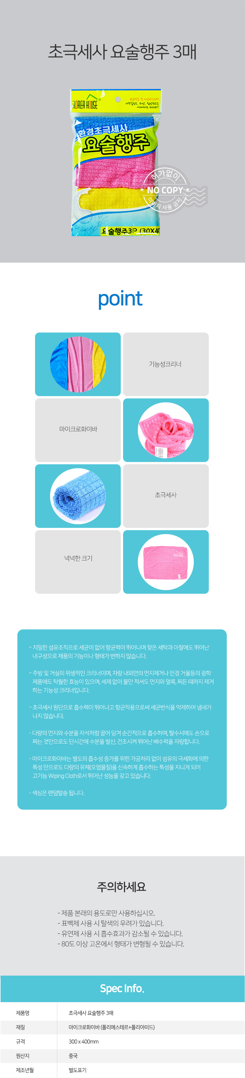 자연앤톡 설거지 3매 초극세사 친환경 걸레 행주 요술행주상품상세_동원몰
