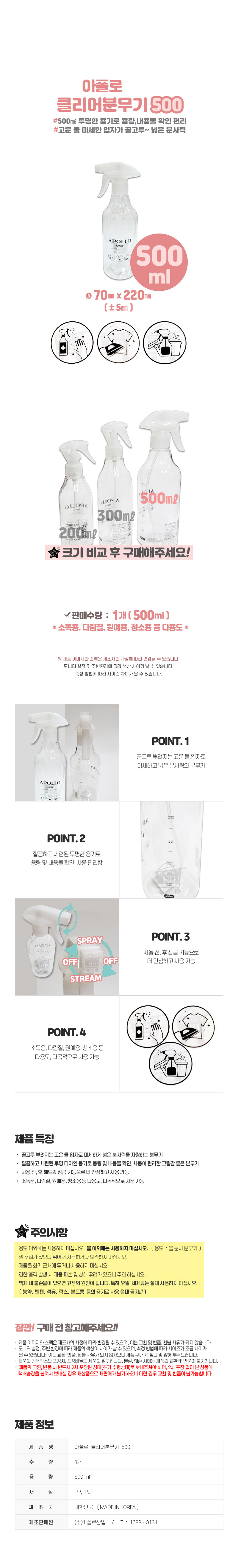 자연앤톡 화분 소독 화단 클리어분무기 분사 500ml 물 아폴로상품상세_동원몰
