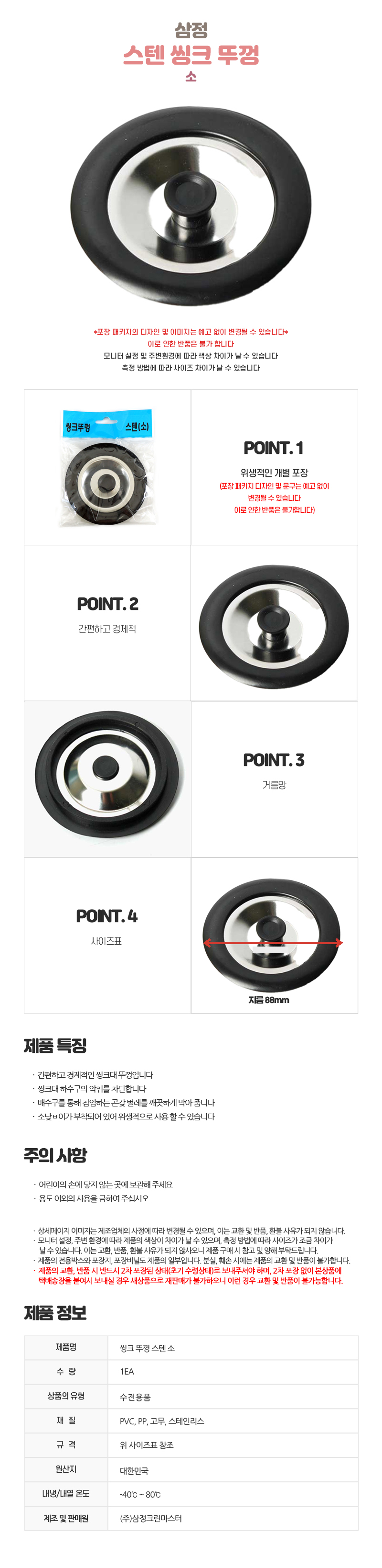 자연앤톡 설거지 벌레 씽크 수채구멍 소 악취 스텐 뚜껑상품상세_동원몰