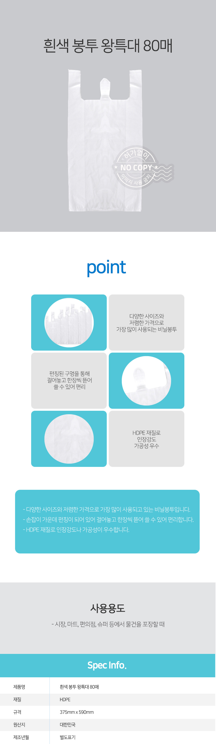 자연앤톡 플라스틱 봉투 왕특 쇼핑 흰색 쓰레기 비닐 80매상품상세_동원몰