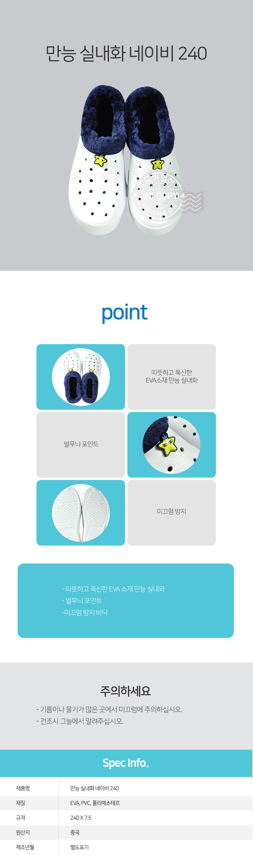 자연앤톡 네이비 겨울 만능 실내화 학교 보온 EVA 240상품상세_동원몰