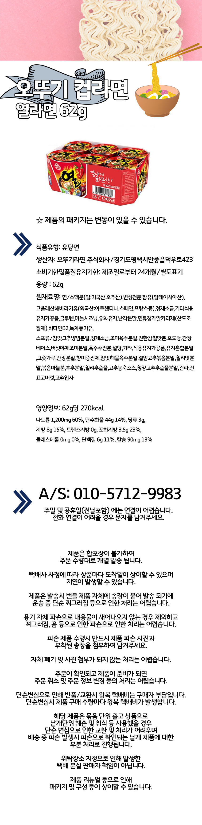 | 포장단위별 내용물의 용량(중량),수량 | 열라면 62g |