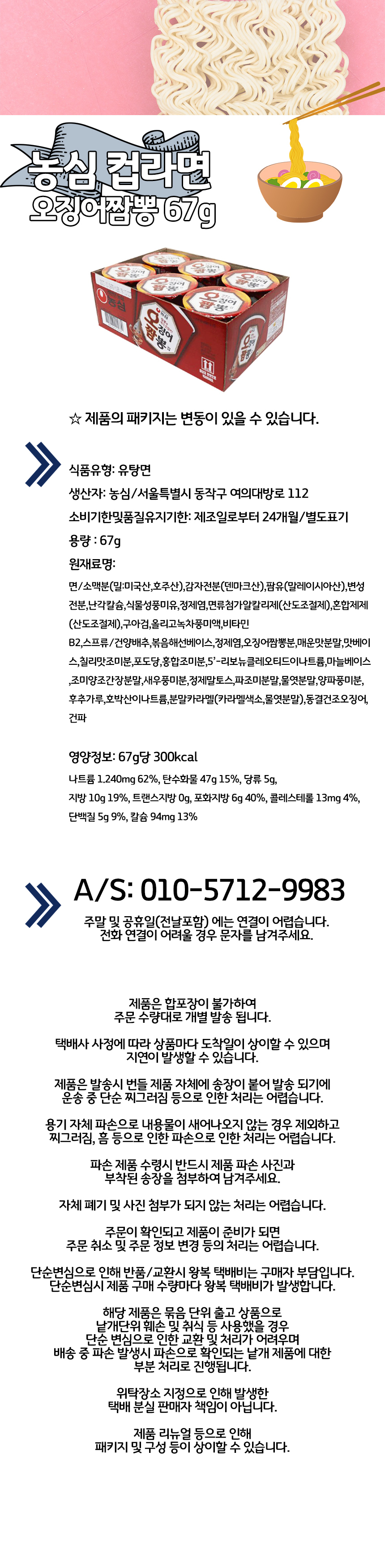 | 생산자 및 소재지/수입자 | 농심/서울특별시 동작구 여의대방로 112 |