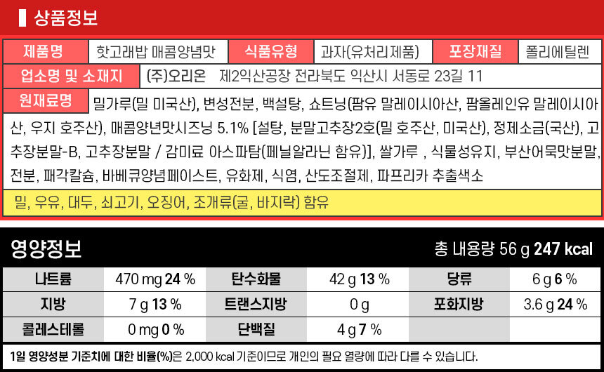 | 식품의 유형 | 상세페이지 참조 |
